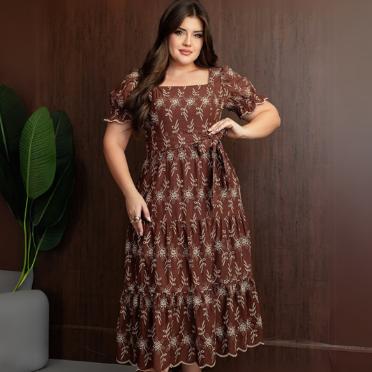 Vestido em Lese Flora Marrom