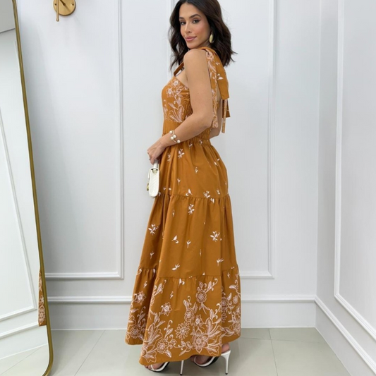 Vestido em Lese Flora Terracota