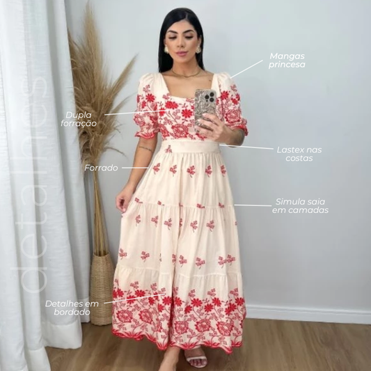 Vestido Flor da Serra Vermelho Bordado